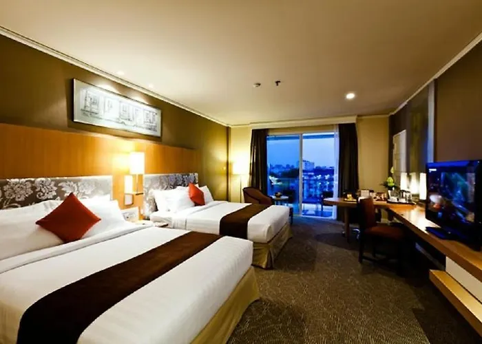 Royal Princess Larn Luang is a 4-star accommodation conveniently located just 2.5 kilometers from the historic Wat Phra Kaeo and the Grand Palace. The modern guest rooms feature cable TV, safes, and mini fridges. With an outdoor swimming pool and six different dining options, including Cantonese and international cuisine, this hotel caters to a wide range of tastes. Meeting facilities are available for business travelers, and guests can relax in the palm-lined pool area. The hotel is accessible by public transportation and is a great base for exploring Bangkok's key attractions.