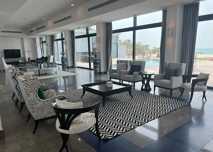 Nurai Losin Estate Villa offers beachfront luxury with six cozy bedrooms and seven bathrooms, perfect for accommodating large groups. Guests have access to an infinity pool, outdoor dining area, and shared lounge. Each unit is designed for comfort, featuring modern amenities such as a flat-screen TV with streaming services and a fully equipped kitchen. The scenic location near Nurai Island provides stunning sea views, while guests can indulge in various activities like cycling and enjoying a water park nearby. With private entrances and security, guests can enjoy peace of mind during their stay.