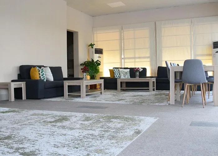 Farm Al Medfek is a unique accommodation option nestled in the countryside, featuring allergy-free environments and spacious rooms. This property includes a shared lounge, outdoor swimming pool, and children's playground. Each room features a flat-screen TV along with a fully equipped kitchen for self-catering. Guests can enjoy nearby attractions like Tower Links Golf Club and local parks. The villa is conveniently located just 30 km from the city center.