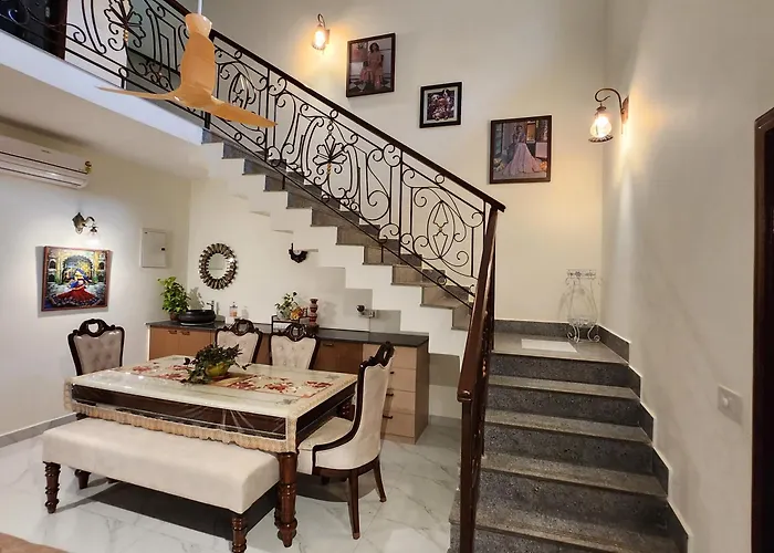 Villa In Kolkata offers comfortable accommodations with access to a kitchen and features a balcony overlooking a beautiful garden. Guests can enjoy the convenience of free private parking and WiFi throughout the property. Located 20 km from Dumdum Metro Station, and 23 km from Sealdah Railway Station, this villa is easily accessible for travelers. The property is also close to New Market and Park Street Metro Station, enhancing its appeal as a home base for exploration.