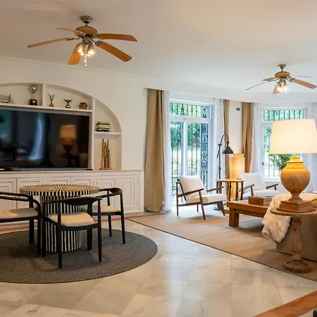 This luxury villa features a private pool. The interior includes 3 bedrooms and 3 bathrooms, with a fully equipped kitchen and a spacious living area. Guests can enjoy a terrace for relaxing moments or a swim in the heated pool. Located just 3 km from Playa del Gobernador, it provides easy access to waterfront leisure activities. San Roque Golf Course is only 14 km away, and La Duquesa Golf is 5 km distant.