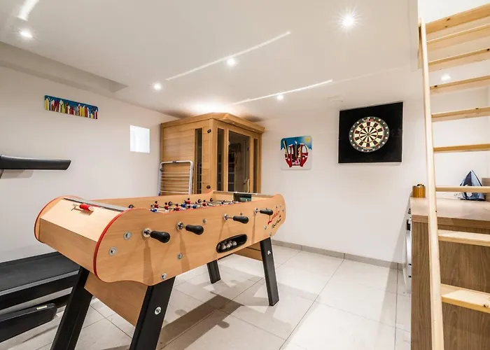 La Venise Du Lac offers a remarkable stay with mountain views and a therapeutic sauna. This villa features four well-appointed bedrooms with air conditioning and a fully equipped kitchen. It ensures privacy with a soundproofed entrance, uniquely blending comfort with relaxation. The on-site coffee shop is a favorite for those mornings before heading out to explore the adjacent attractions like the Plage Des Marquisats. A short drive away from key locations, the villa offers a peaceful ambiance while still being close to the heart of Annecy.